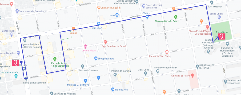 - Lugar de concentración: Av. Ayacucho # 250 Edif. El Clan entre Gral Achá y Santivañez (Frente a la Caja Nacional de Salud)